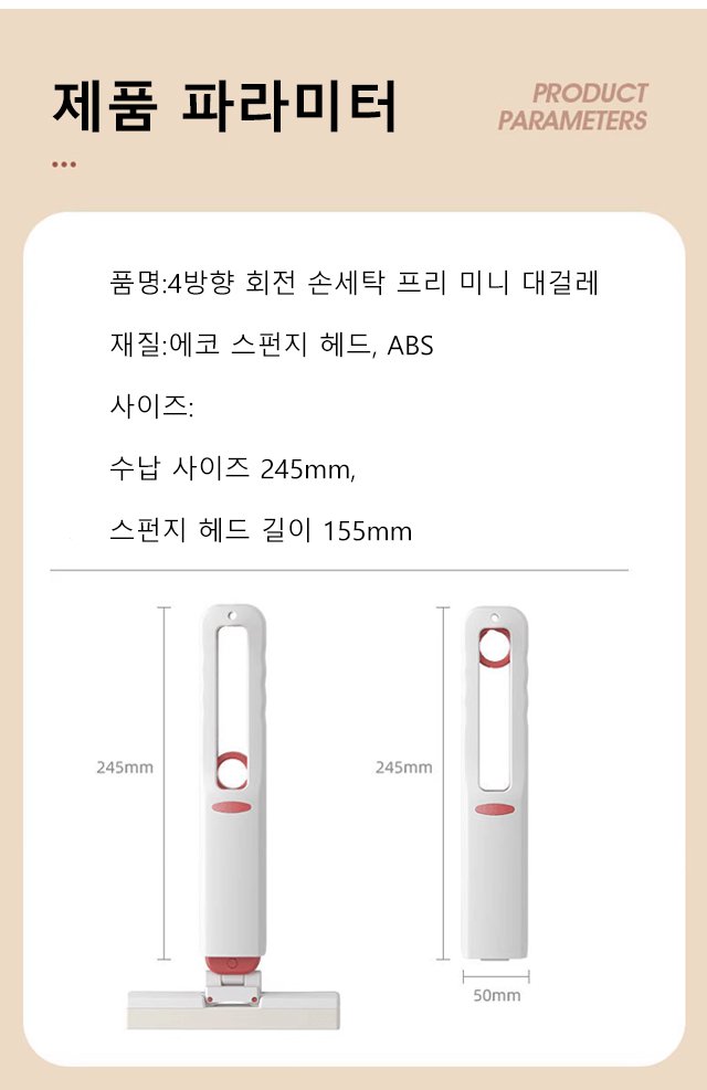 4방향 회전 손세탁 프리 미니 대걸레